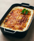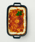 Ingredientes: massa, carne de novilho, cogumelos, cebola, tomate, cenoura, oregãos, manjericão leite, farinha de trigo, manteiga, queijo mozzarela, sal, pimenta, azeite, noz moscada.