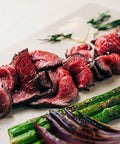 Ingredientes: carne de vaca, sal, pimenta, azeite, manteiga, alho, tomilho, alecrim.