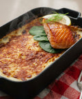 Ingredientes: massa, salmão, ricota, tomate, espinafres, sal pimenta, farinha, leite, manteiga, queijo